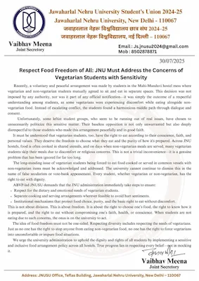 खबर के मुताबिक, विवाद तब शुरू हुआ जब अखिल भारतीय विद्यार्थी परिषद (ABVP) से जुड़े छात्रों ने मांग की कि छात्रावास के मेस में नॉन वेज भोजन की सेवा बंद की जाए। उनका तर्क था कि कुछ छात्रों की धार्मिक भावनाओं का सम्मान करना जरूरी है। दूसरी ओर, जेएनयू स्टूडेंट्स यूनियन (JNUSU) ने इसे छात्रों की व्यक्तिगत पसंद पर हमला करार देते हुए इसका विरोध किया। JNUSU का कहना है कि मेस में वेज और नॉन वेज दोनों विकल्प उपलब्ध हैं, और हर छात्र को अपनी पसंद चुनने का अधिकार है।