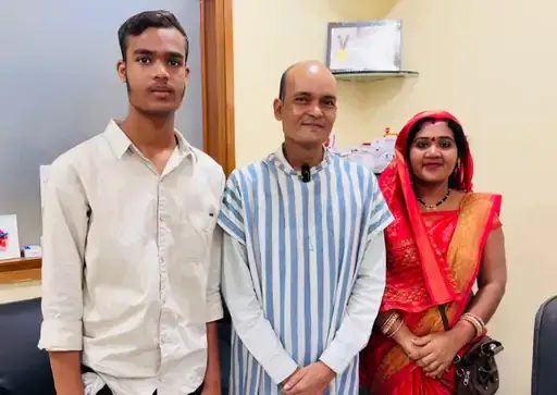 अपने पूरे परिवार के साथ इलाज के बाद राहुल।