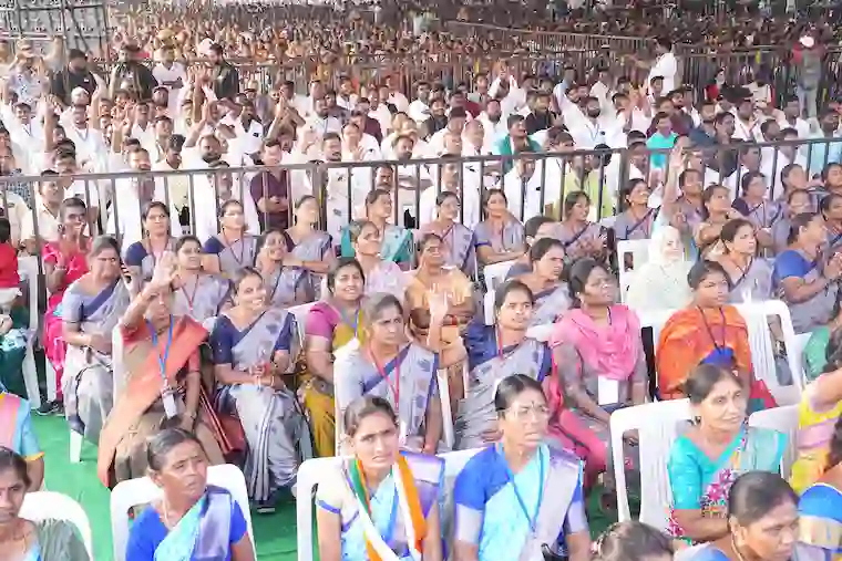 मुख्यमंत्री ने नरसंपेट में आयोजित जन शासन जनता विजयोत्सव सभा को संबोधित करते हुए कहा कि राज्य सरकार ने किसानों, युवाओं और गरीबों के लिए अनेक कल्याणकारी योजनाएं लागू की हैं। उन्होंने कहा कि किसानों को 24 घंटे मुफ्त बिजली, 9 दिनों में 9,000 करोड़ रुपए का किसान भरोसा लाभ, 25.35 लाख किसानों के 20,000 करोड़ रुपए के ऋण माफ किए। मुख्यमंत्री जनता के लिए नई राशन कार्ड व्यवस्था आदि की चर्चा की। मुख्यमंत्री ने शिक्षा, महिला सशक्तिकरण और रोजगार पर भी जोर दिया।