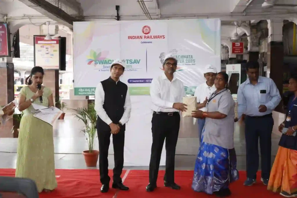 महाप्रबंधक संजय कुमार श्रीवास्तव ने अधिकारियों और कर्मचारियों के साथ काचीगुडा रेलवे स्टेशन पर श्रमदान गतिविधि में भाग लिया। उन्होंने अधिकारियों के साथ काचीगुडा रेलवे स्टेशन के सर्कुलेटिंग एरिया की सफाई की। महाप्रबंधक ने स्टेशन पर सफाई मित्रों को सम्मानित किया और निबंध लेखन और चित्रकला प्रतियोगिताओं के विजेताओं को पुरस्कार भी वितरित किए। जनता में जागरूकता फैलाने के लिए रेलवे कर्मचारियों द्वारा स्टेशन पर स्वच्छता विषय पर एक नुक्कड़ नाटक शो का प्रदर्शन किया गया। स्वच्छता विषय पर एक सांस्कृतिक कार्यक्रम भी प्रस्तुत किया गया।